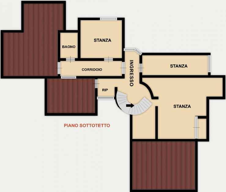 .P.Sottotetto di ca 150 mq: due stanze, una sala svago e un bagno con doccia.