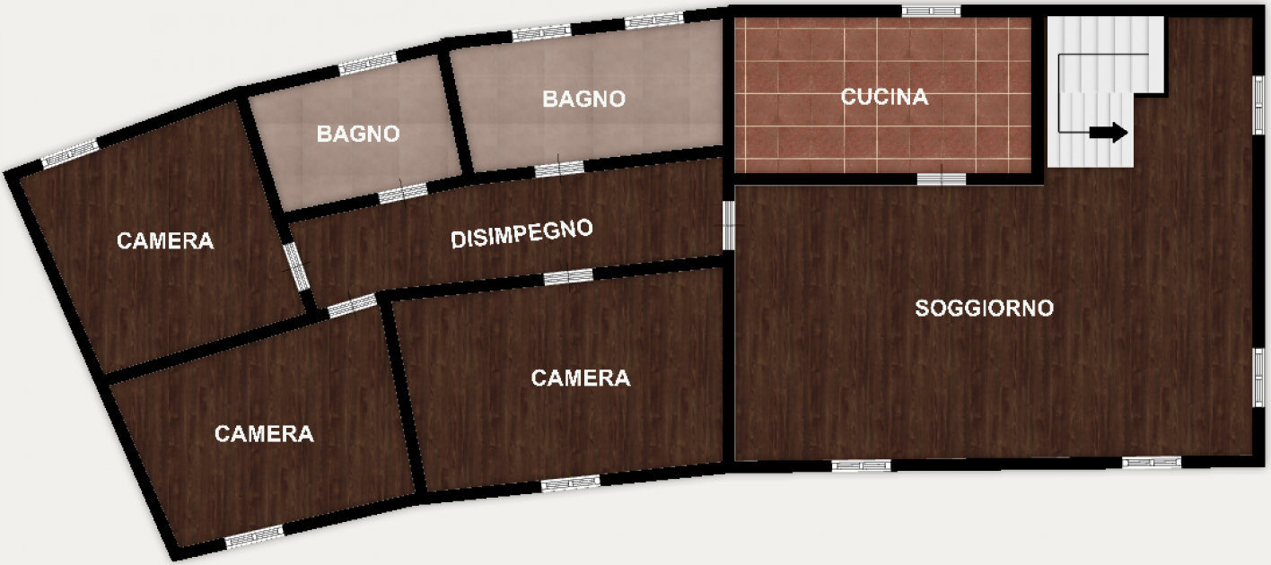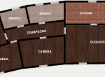 P.SECONDO: di circa 120 mq, soggiorno con caminetto, cucina abitabile, disimpegno zona notte, camera matrimoniale, bagno con vasca, bagno con doccia, due camere singole.