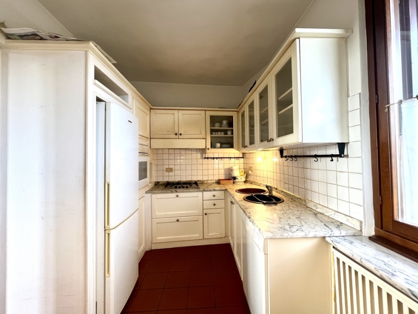 L'appartamento, situato all'ultimo piano e libero su tre lati, gode di un'ottima esposizione e di grande tranquillità grazie alla posizione interna rispetto alla strada, pur rimanendo comodo ai principali servizi.