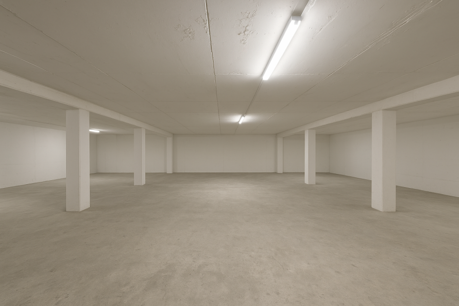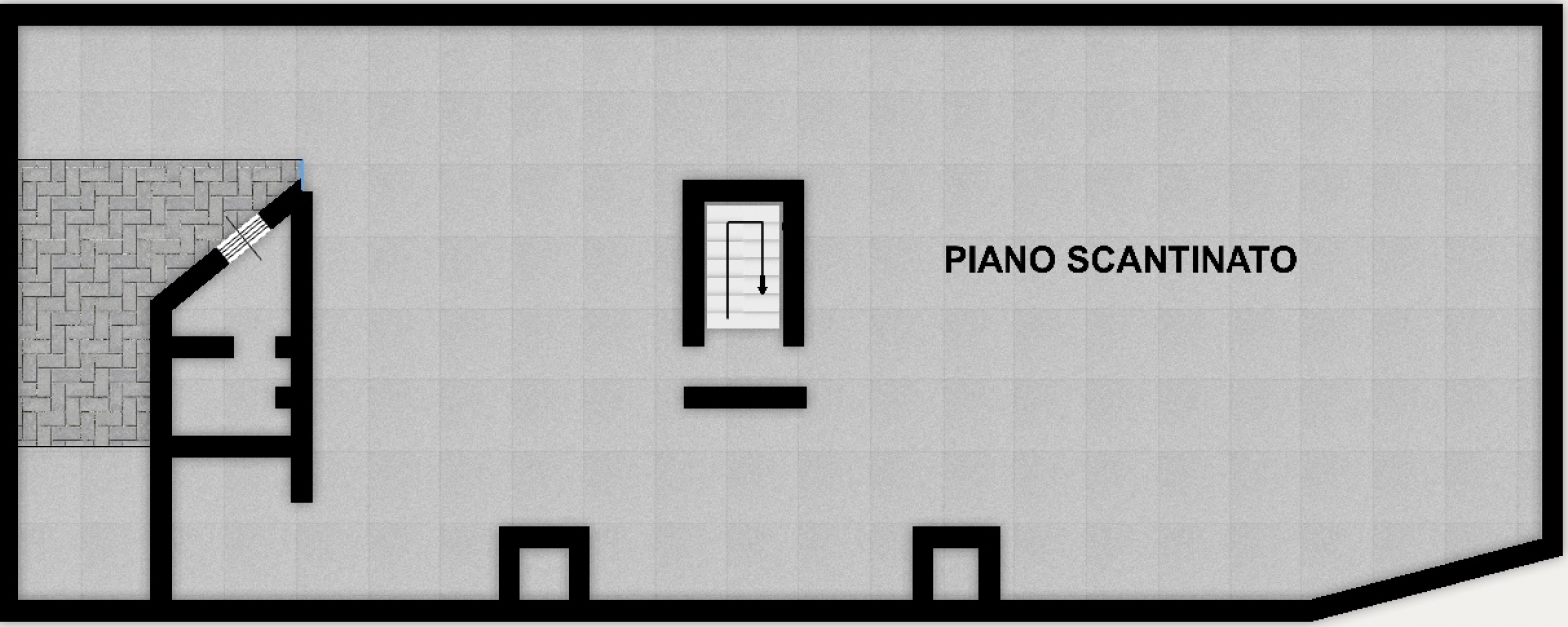 Completa la proprietà uno scantinato adibito a garage, comodo e facilmente accessibile da una rampa, con spazio sufficiente per più veicoli o per uso deposito.