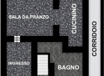 P.TERRA: di circa 50 mq, area pranzo con cucinino parzialmente separato, bagno e corridoio che da accesso all'area verde privata.