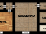 Secondo piano di circa 62 mq: ingresso su disimpegno, cucina con sfogo sul terrazzino, soggiorno, disimpegno zona notte, bagno con vasca e doccia, camera matrimoniale.